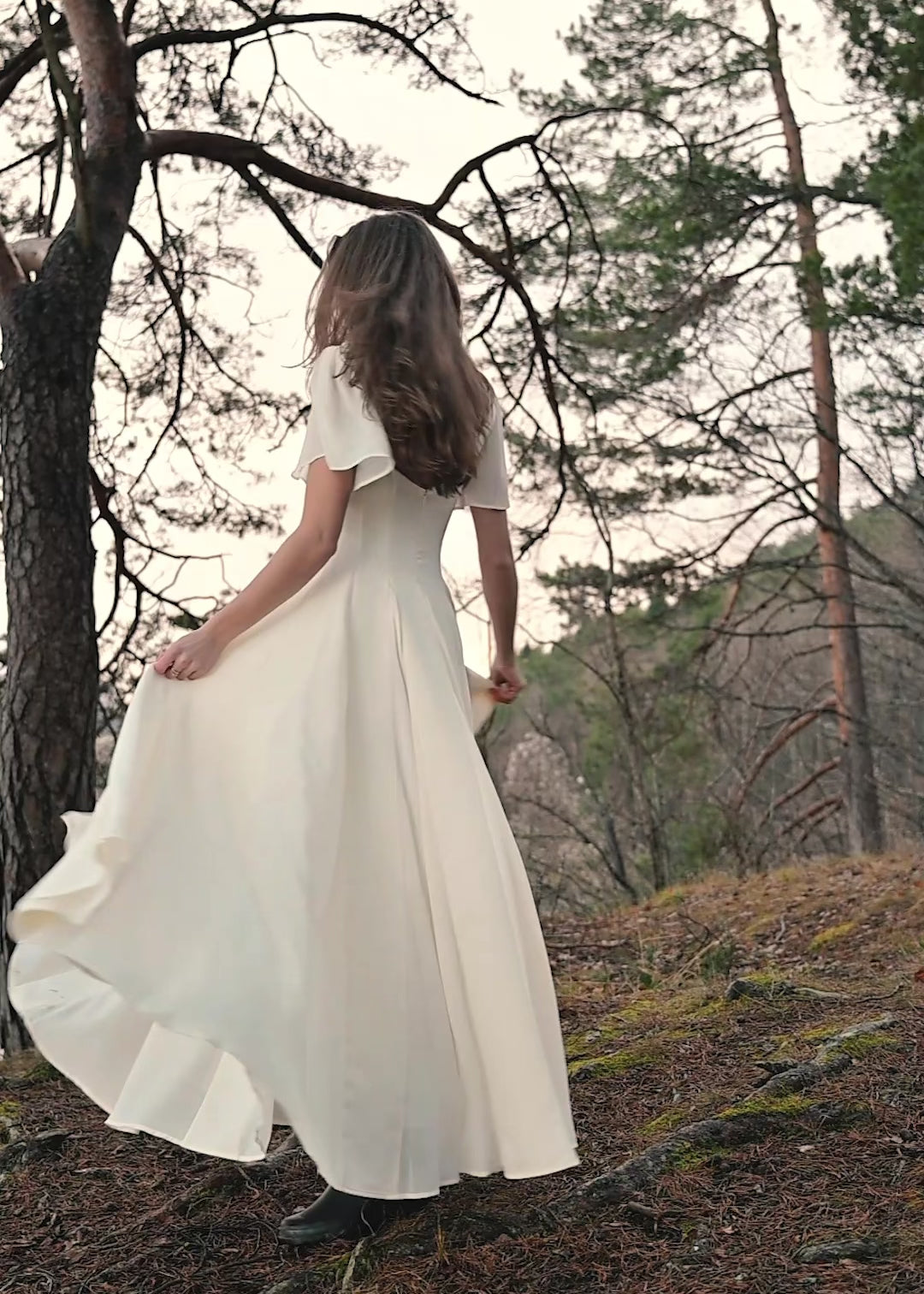 Our beloved Alette dress has become a favorite among modern brides for its elegant movement and universally flattering fit. The soft flutter sleeves create a romantic, airy feel, while the structured body panels shape the waist beautifully without compromising comfort. A hidden back zipper keeps the silhouette clean and seamless, and the full skirt drapes with effortless grace.