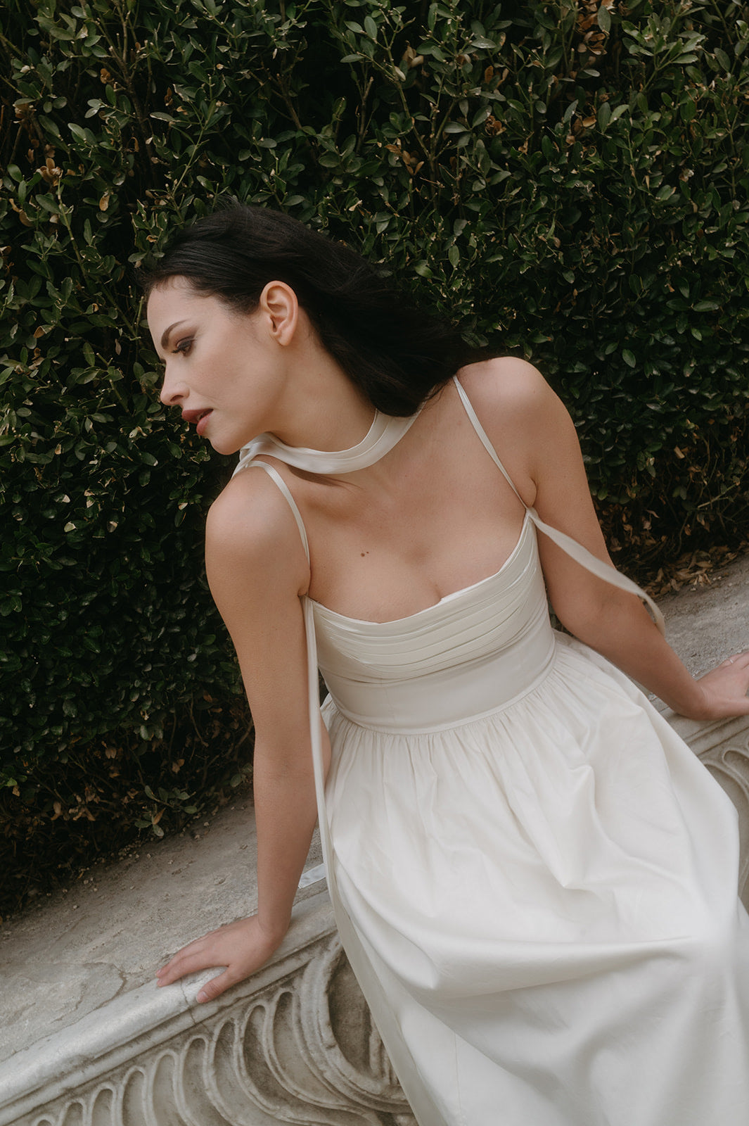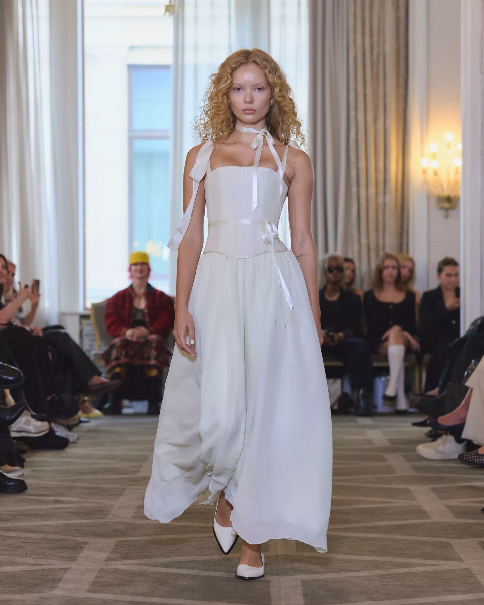The collection, inspired by the minimalist beauty of Scandinavian living, featured 15 looks crafted in silk and cotton, emphasizing romantic cottage-core elements like pleated busts, bows, and laced-up bustiers. Notably, the Elsa Maxi Dress and Elsa Bustier were among the standout pieces, reflecting the brand's commitment to timeless elegance and precise tailoring.