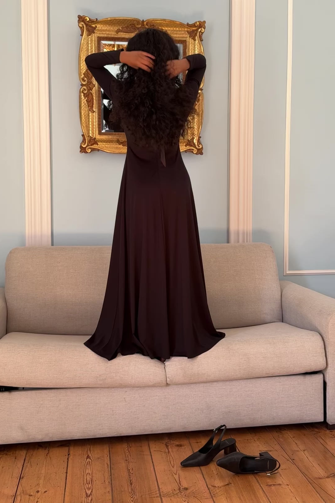 The Tuva turtleneck maxi is a stunning dress designed for both comfort and style. With its voluminous skirt, this dress offers a beautifully flowy silhouette that moves gracefully with every step. The turtleneck is crafted from luxurious silk satin, featuring long ties that add an elegant touch to the back. The dress also boasts a lower back with a convenient zipper, making it easy to slip on and off. Fully lined and made from an ultra-soft knit jersey fabric, the Tuva Turtleneck Maxi is a perfect blend of sophistication and ease.